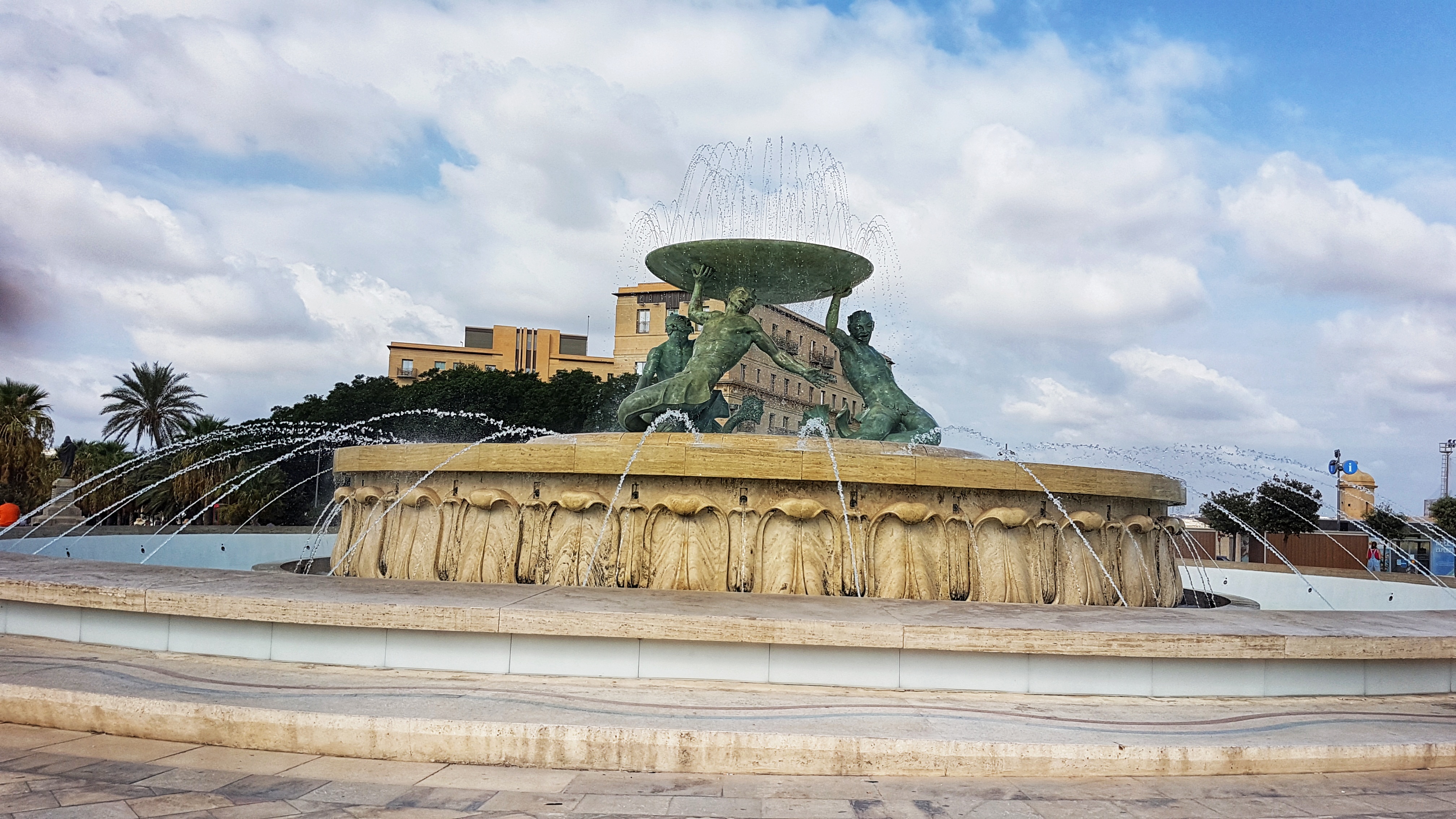 Chiar înăinte de a intra pe poarta orașului Valletta, se află Fântâna Tritonilor care amintește de legătura orașului cu mare și activitatea principală a locuitorilor săi, pescuitul.