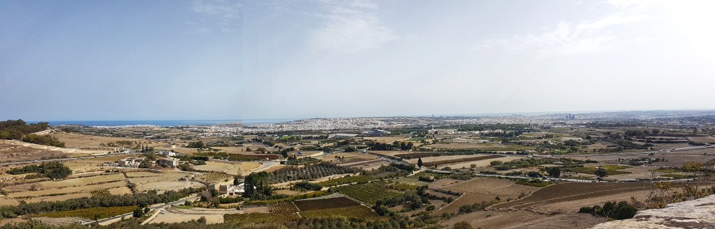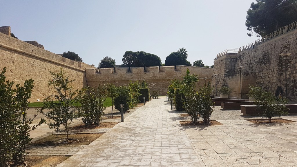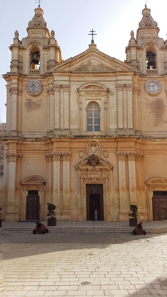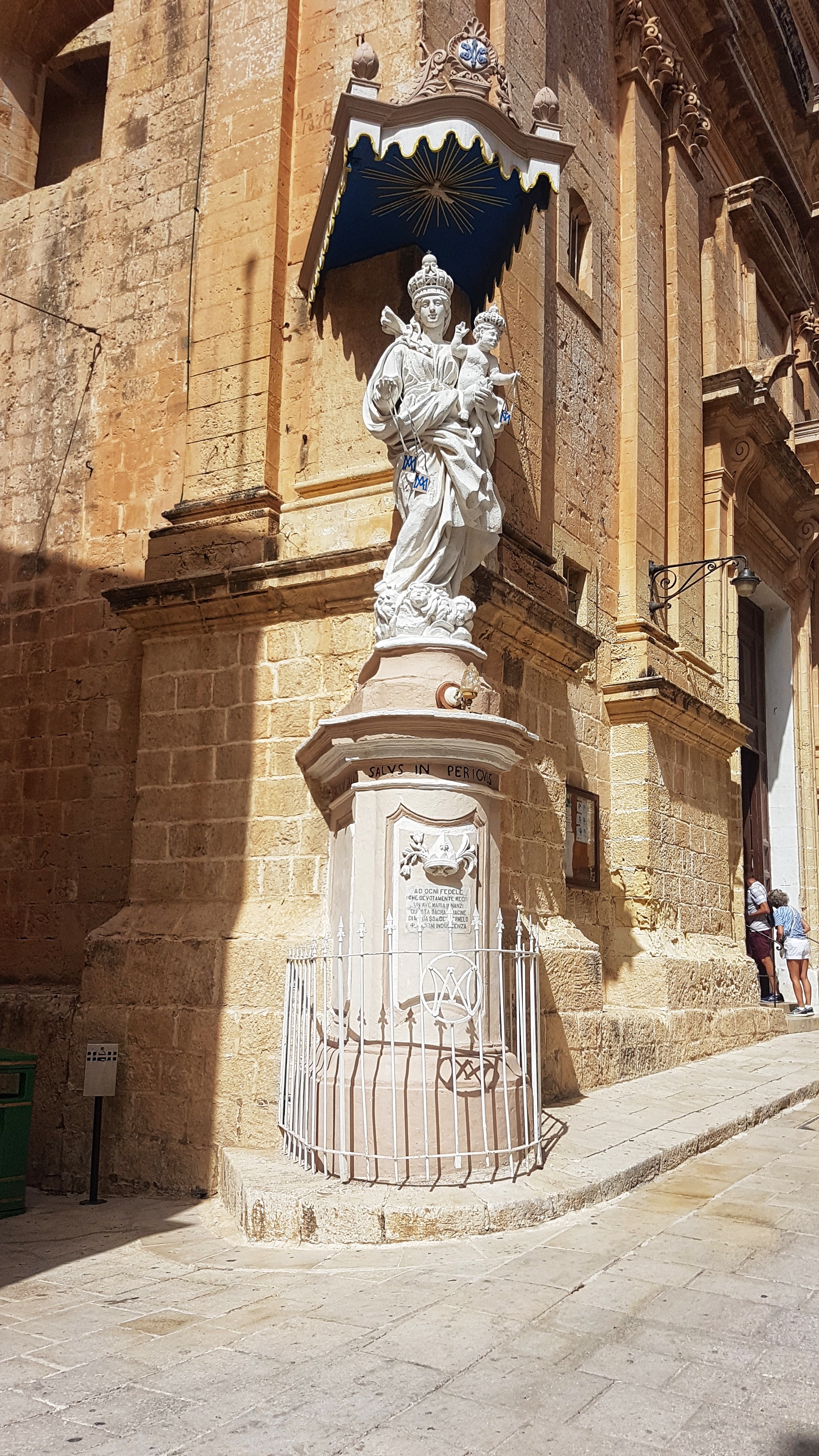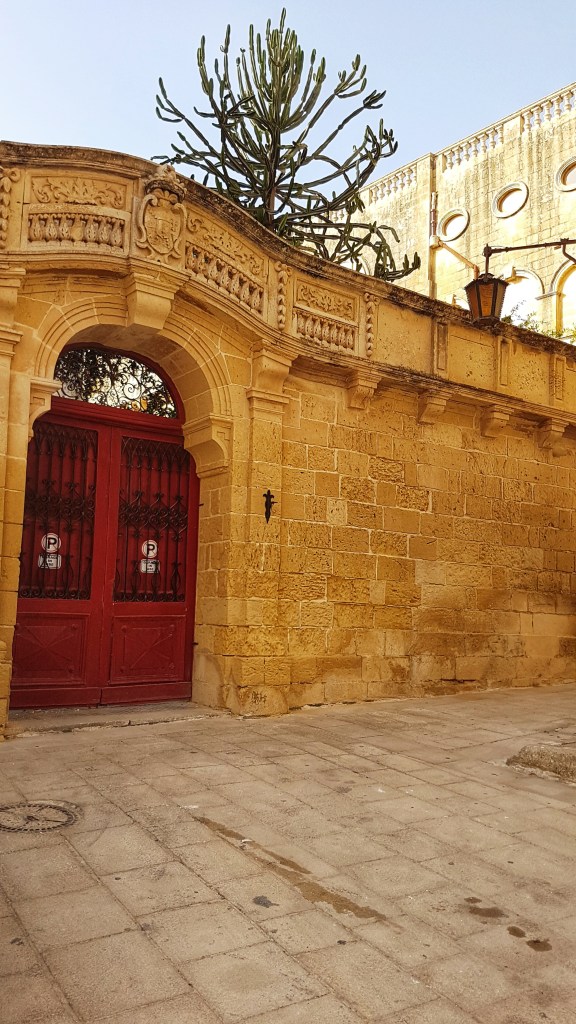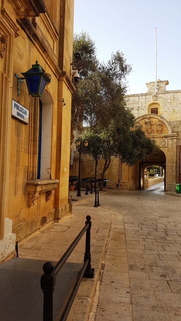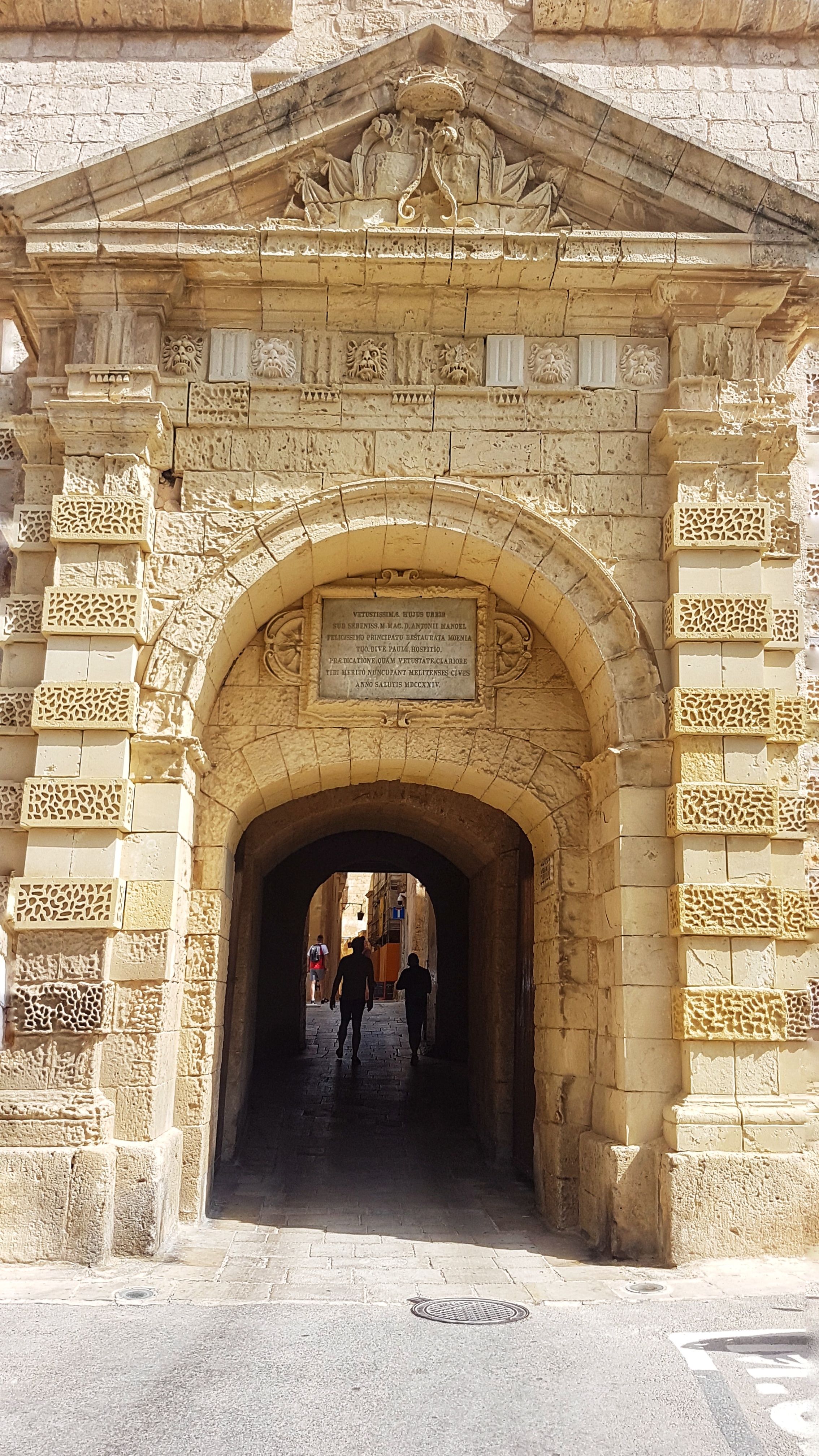 Prin Poarta Grecilor ieșiți din orașul cetate, Mdina. Poarta a fost construită inițial în perioada medievală, iar portalul său exterior a fost construit în stil baroc în 1724 de Charles François de Mondion.
